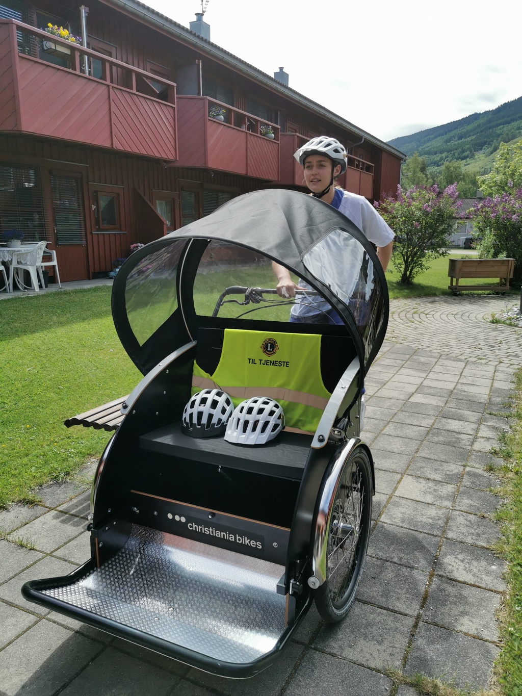Lions club Ringebu-Fåvang har i sommer gitt en elektrisk sykkeltaxi med hjelmer til Omsorgssenteret. Personer over 18 år kan avtale med personalet og sykle med de som kan ha glede av en tur ut, uavhengig om de bor på Omsorgssenteret eller er hjemmeboende.